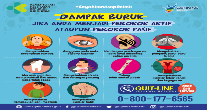 Menurut Kementrian Kesehatan semakin tahun semakin bertambah jumlah perokok di kalangan anak muda. Tentu sangat mengkhawatirkan sehingga butuh ditangani lebih serius. Mengapa Merokok meyebabkan kualitas anak bangsa menurun ?karena toksin yang ada di salam rokok berpengaruh buruk pada kesehatan tubuh seseorang. Menurunnya kesehatan tentu akan berpengaruh pada kualitas berpikir generasi muda tersebut sehingga apabila dibiarkan maka Negara ini akan kehilangan kesempatan mendapatkan pelanjut kekuasaan dengan kualitas baik, yang tak hanya sehat fisiknya saja namun juga baik kualitas mental dan pikirnya.